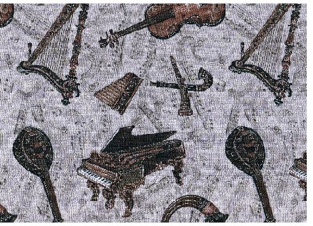 Print Concepts brings this beautiful cotton fabric in music instruments for that special musician in your life. The chocolate Vienna Nights from Moda makes a beautiful backing for your special musician.