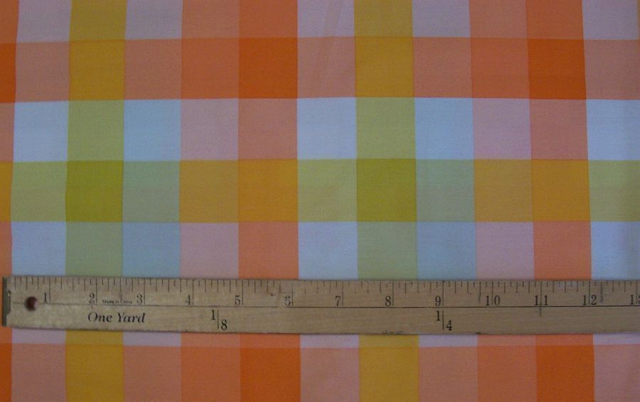 This delightful check comes from the Day Trip collection by Art Gallery Fabrics. The colors are creamsicle tangerine, light peach, yellow, and pinkie peach. 3 yards available.