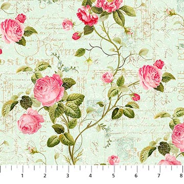 This beautiful postcard print comes from Northcott fabrics. This lovely floral would make a beautiful Garden Twist quilt, table runner or a simply elegant table topper.