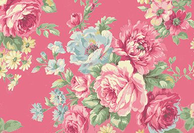 Luscious rose blooms of dark rose and blue rest peacefully on a background of dark rose. Large bouquets measure 7 inches across. Brought to you by Quilt Gate of Japan. Sorry sold out.