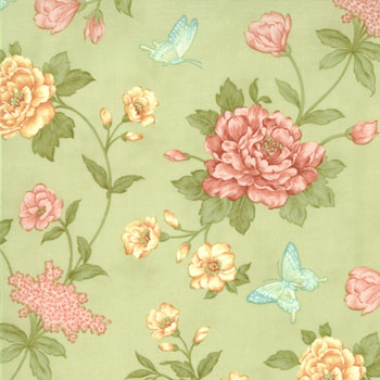 Another of our favorites designers, April Cornell brings this beautiful leaf green print in a delightful and refreshing hint of spring with butterflies and delicate flowers floating on a pale peaceful green backdrop. This is another fine cotton print to complete the Natures Chorus collection by Moda. Order now while the yardage is available. Sorry, this item is sold out.