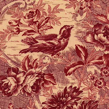This beautiful tea-stained print in dark red comes from In The Beginning Fabrics designed by Sharon Yenter of the Floral Bouquets and Fancies toile collection.