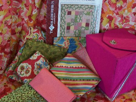 This beautiful kit completes in this designer box with fabric from Moda from the Charisma collection, sassy green cheetah print by Lakehouse. This green cheetah print gives a real zing to this quilt adding a flair of sass! Everyone needs a little Sass! This complete kits contains the BACKING, Pattern, and all the fabric to complete the quilt top, in fact, to complete the whole quilt. The finished quilt measures 56 X 68 inches and uses the Flower Maze pattern by Thimbleberries. All fabric is labled. Sorry this kit is sold out.