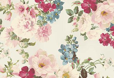 Beautiful open Roses in pale pinks and hues of dark cherry pink with dainty dark red Phlox and a touch of blue Forget-Me-Not flowers on a vanilla cream background makes this print one of the most life-like prints ever! This collection is exquisite!
