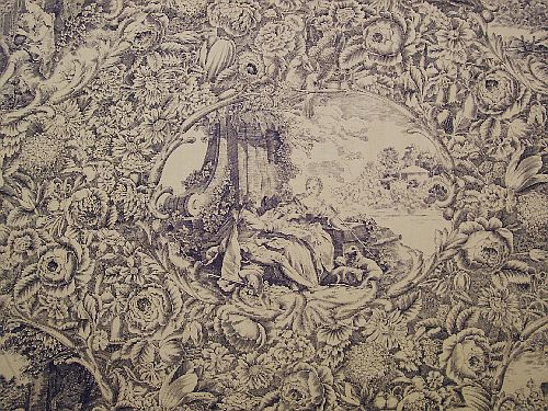 This vintage toile from Yuwa of Japan is alive with the romance of the century. Beautiful vintage background of tea stain beige detailed in antique black print of a romantic couple. Two different scenes of romance. Second scene is of a gentleman serenading his lady with song in flute. Medallions measure 11 inches with the repeat 14 inches. Temporarily out of stock. This print will be back in stock May 2023.