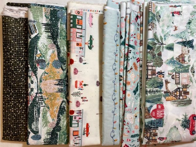 6 one yard cuts of Christmas Villages and miscellaneous prints from Art Gallery and Figo fabrics.