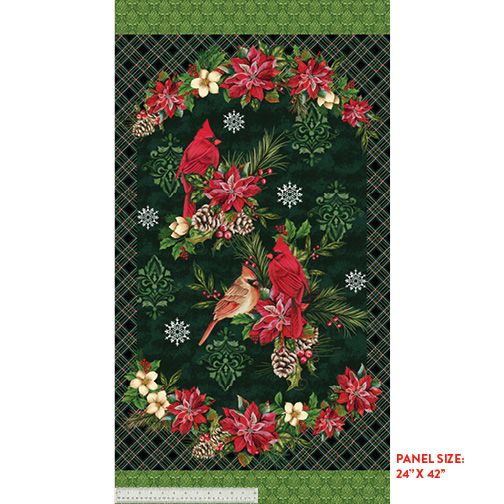This beautiful cardinal Christmas panel by Windham Fabrics is accompanied by 5 Christmas print fat quarters. Panel is shown in the small inset picture. Only one bundle available.