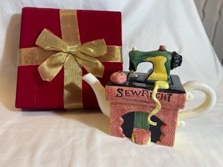 This adorable ceramic teapot is just the right gift for your sewist friend is a tea lover! Comes in the red velvet box in a shipping box as well.
