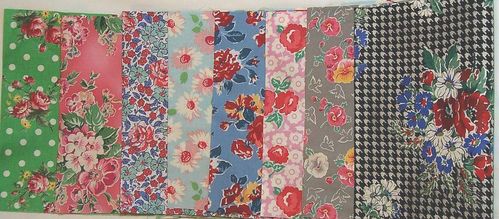 These beautiful fabrics are vintage reproduction prints from the 30s, 40s, and 50s. Fabrics are (2) from Yuwa of Japan, In the Beginning Fabrics, Chanteclaire, Moda, Stitch n Sparkle. Sorry sold out.